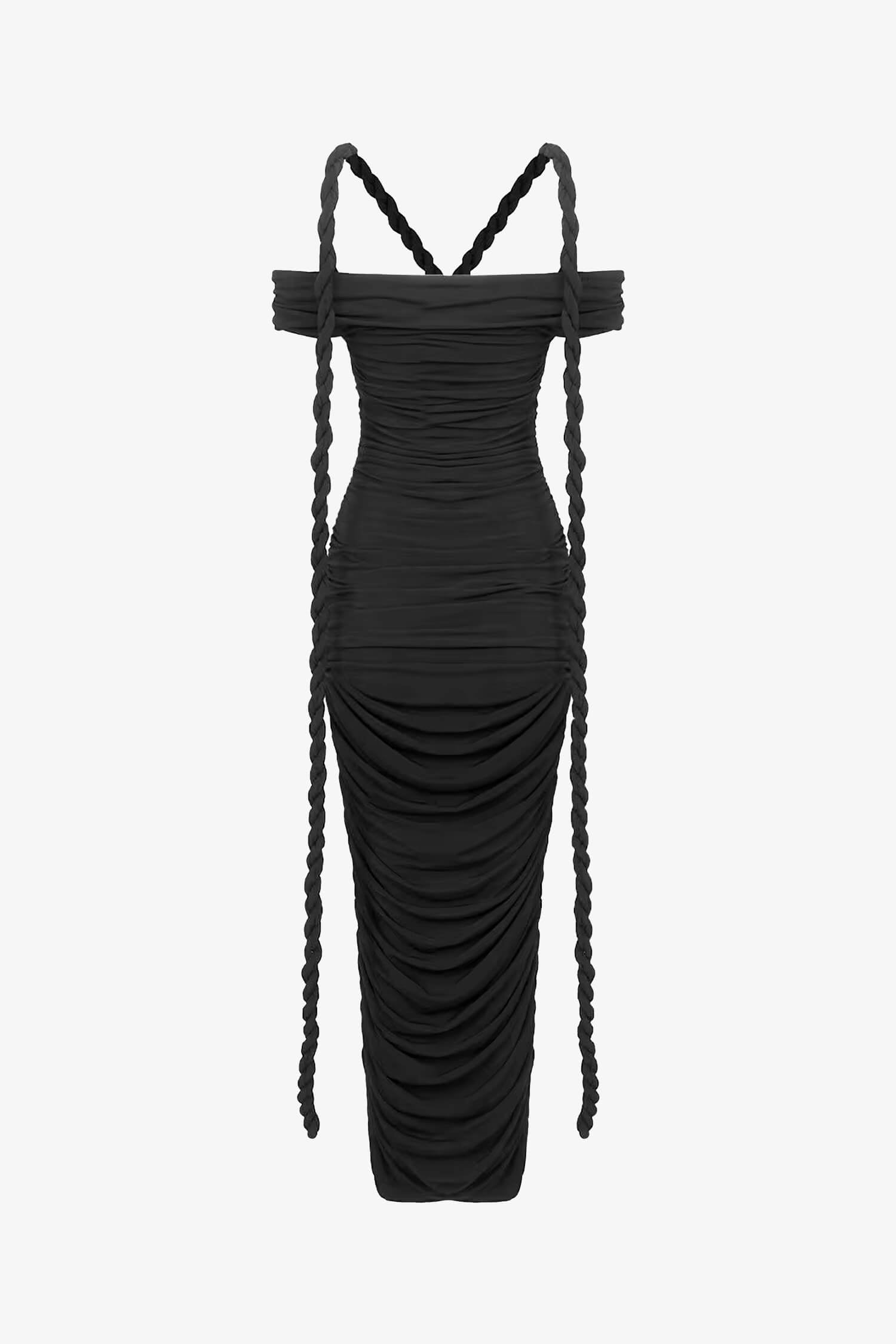 Black Bardot Bodycon Maxi Dress