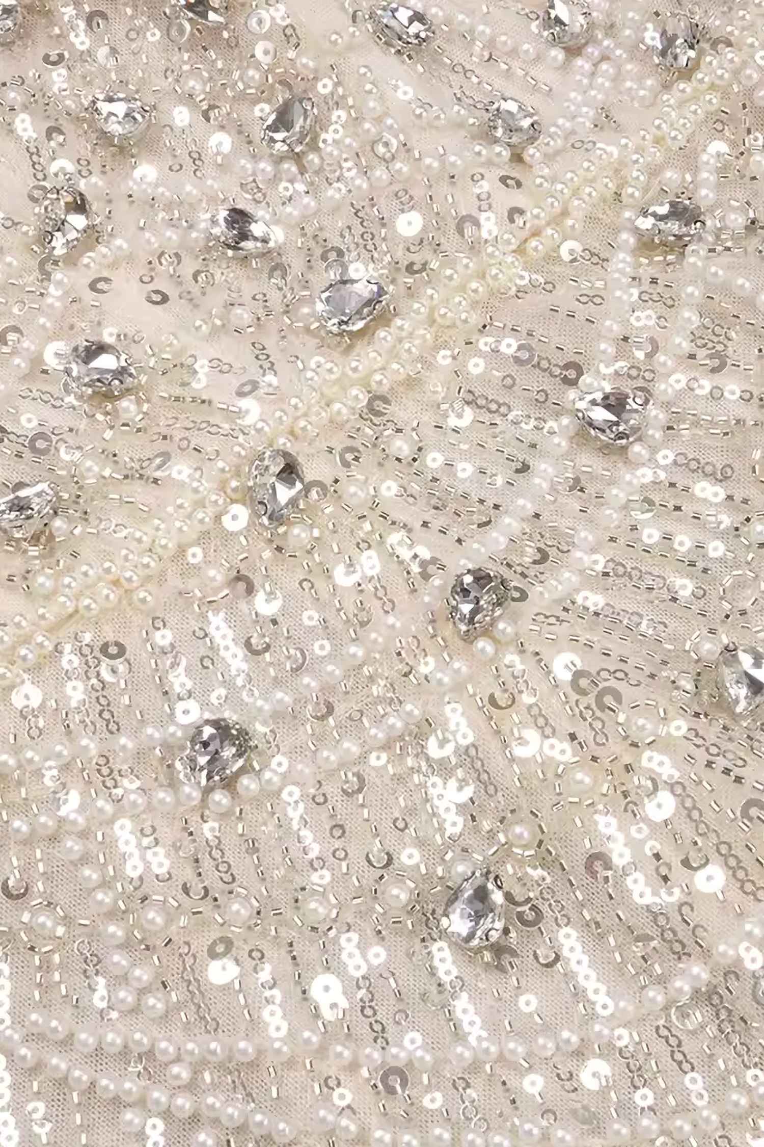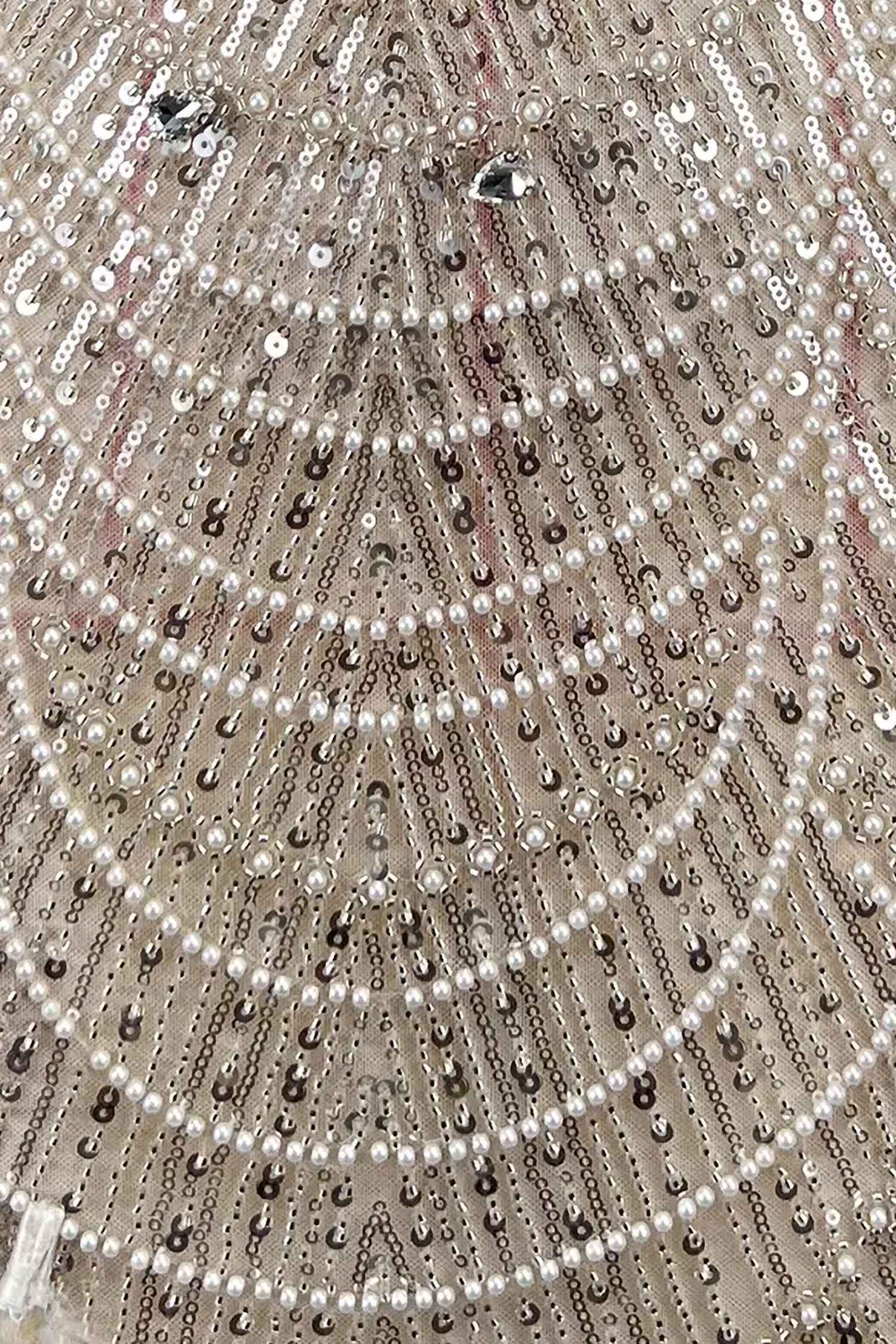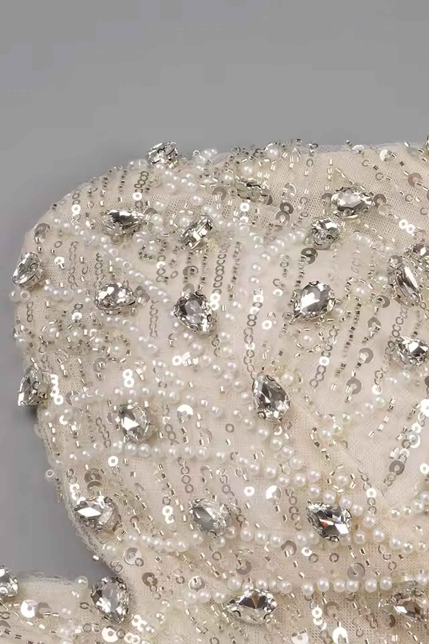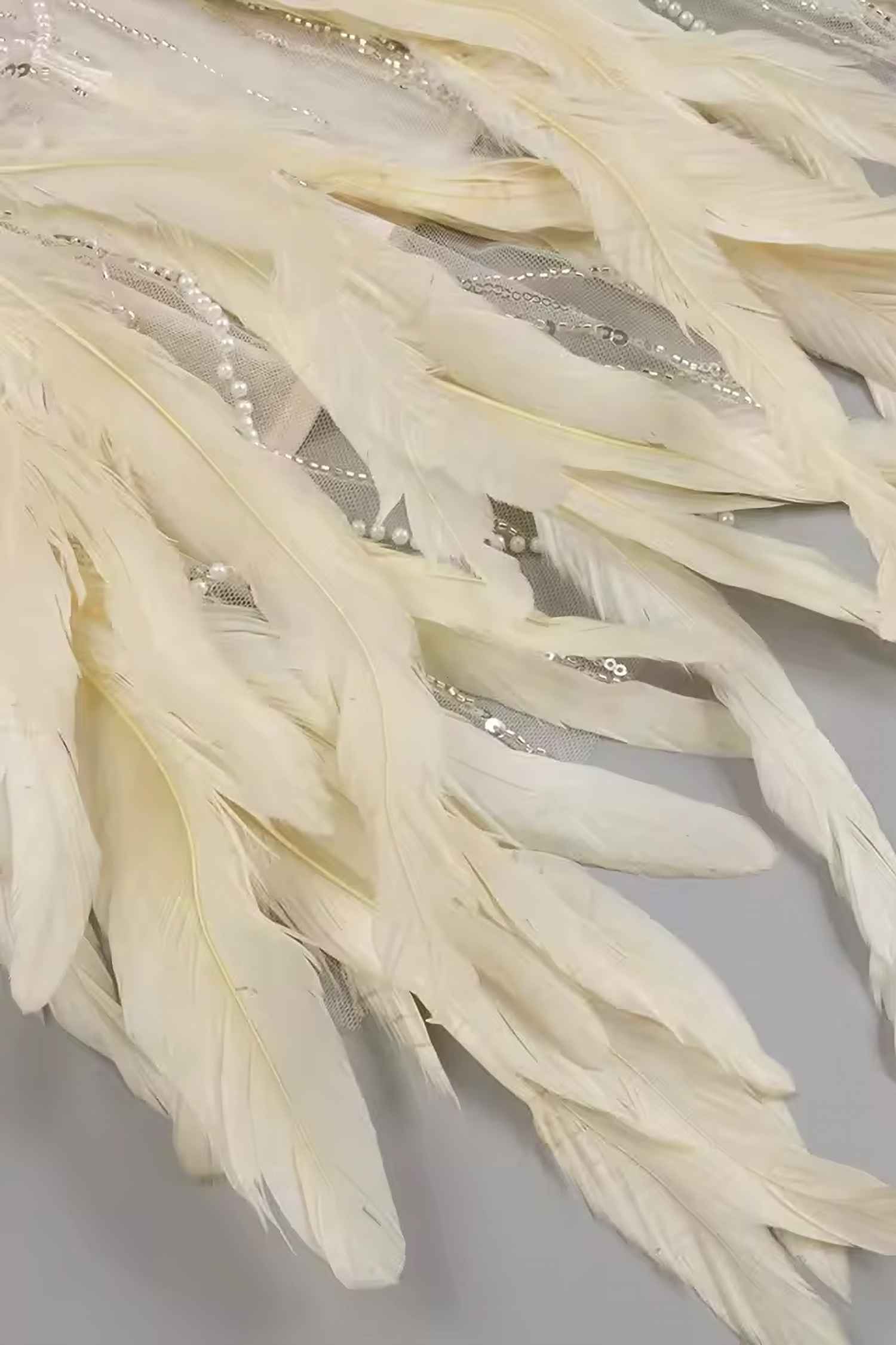 Champagne Strapless Feather Sequin Slit Maxi Dress