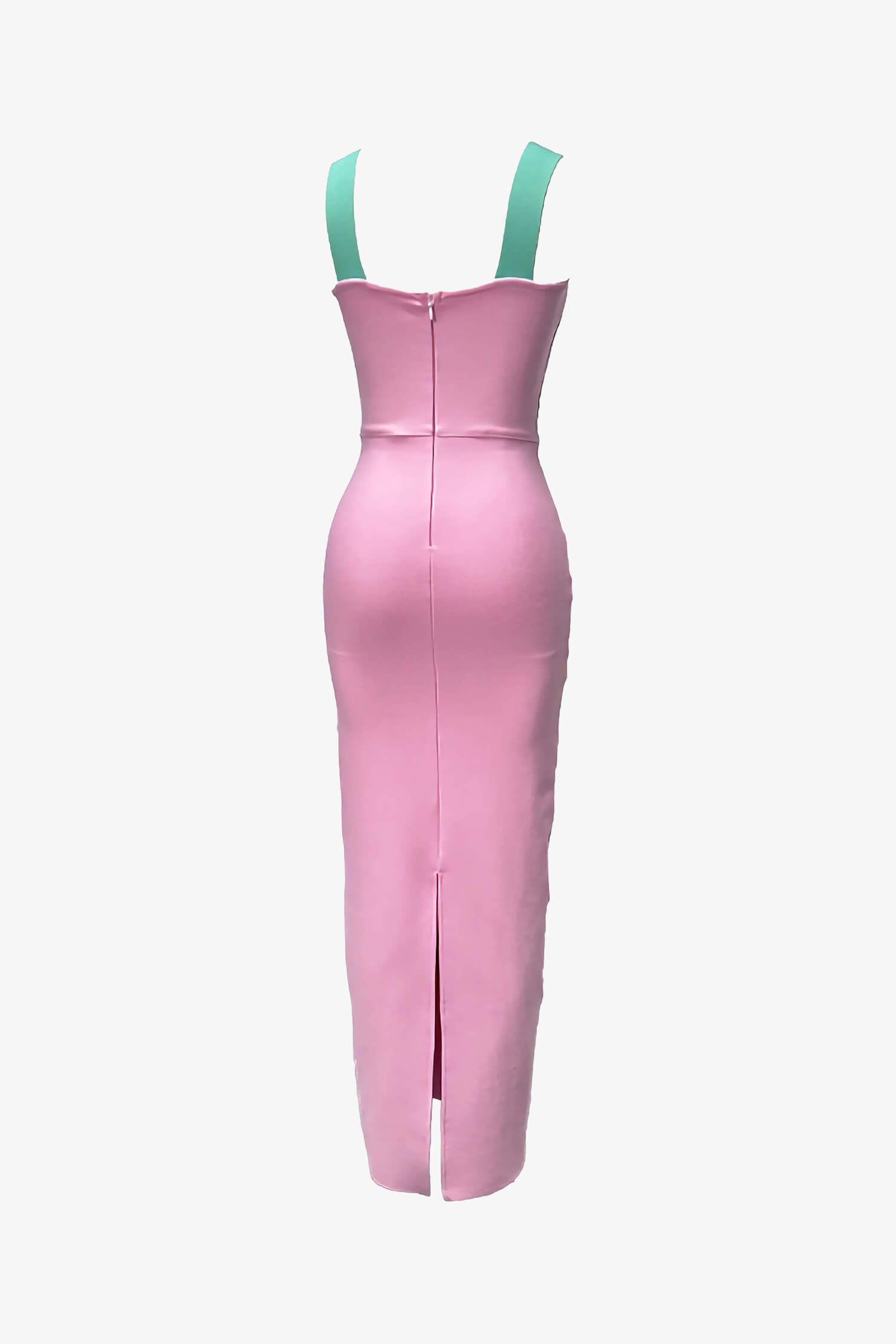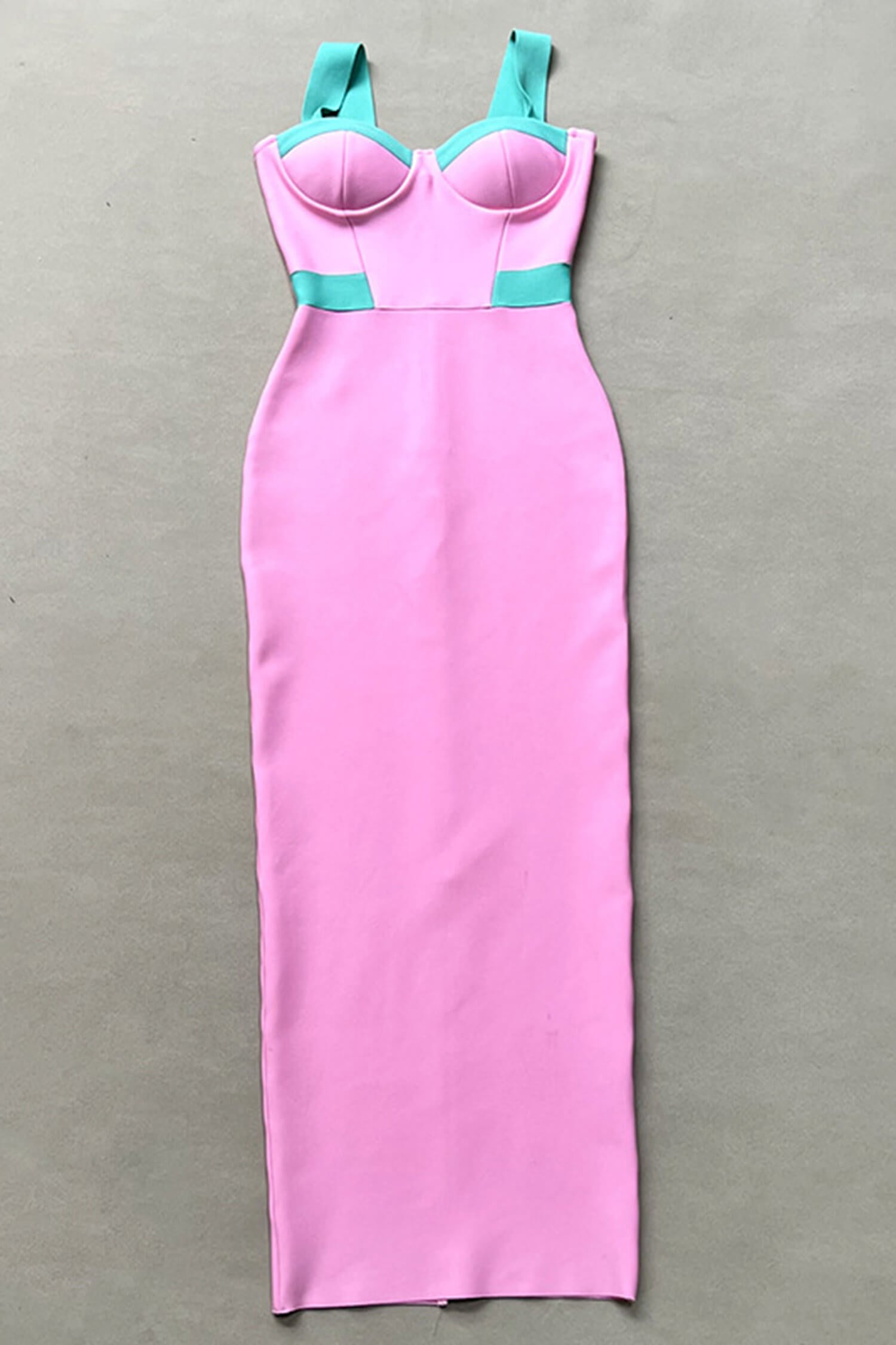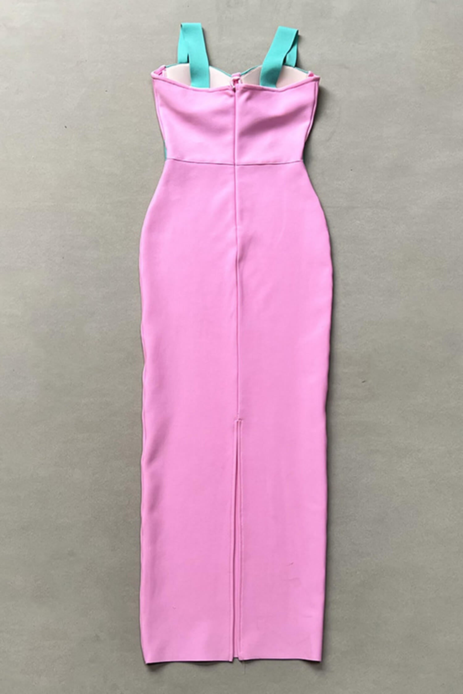 Step out in style with the Pink Bandage Bodycon Maxi Dress, designed for women who want to turn heads. This stunning maxi dress comes in a flattering pink hue with a sweetheart neckline and a backless, sleeveless design. The stretchy bandage fabric cinches your waist and hugs your curves perfectly. With underwired and padded cups, it gives you all the support you need, while the split detail adds a hint of drama. Light blue block accents complete the look, making it great for cocktail parties, evening events, club nights, date nights, weddings, and homecoming.