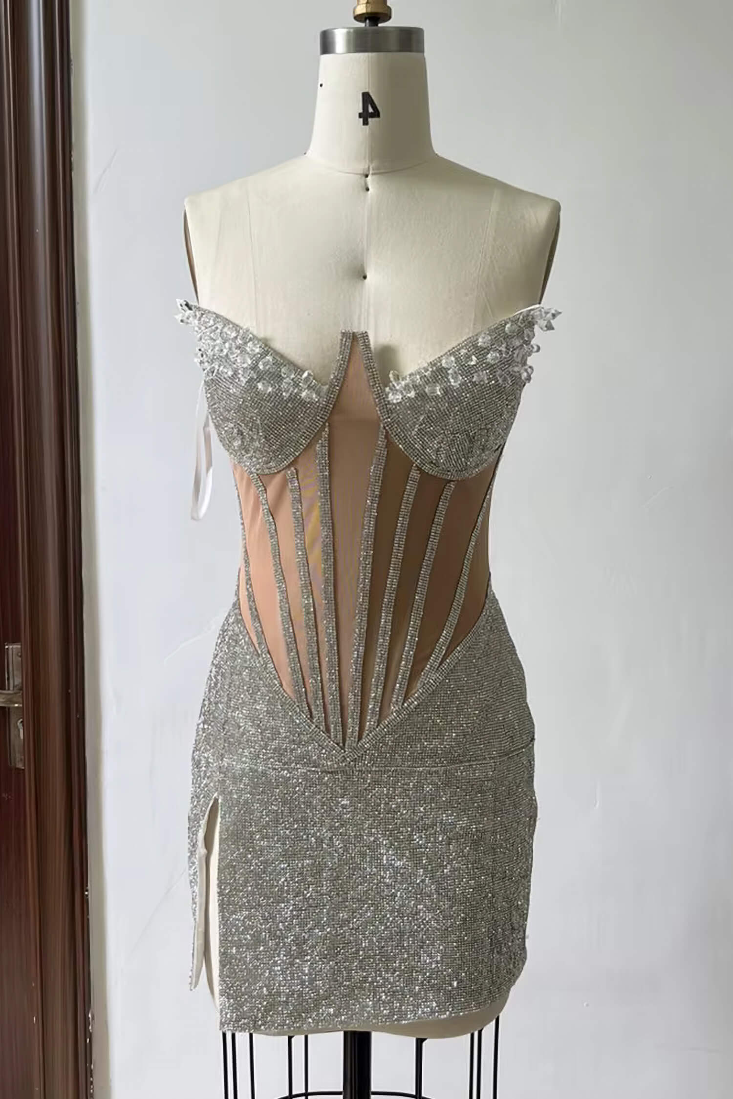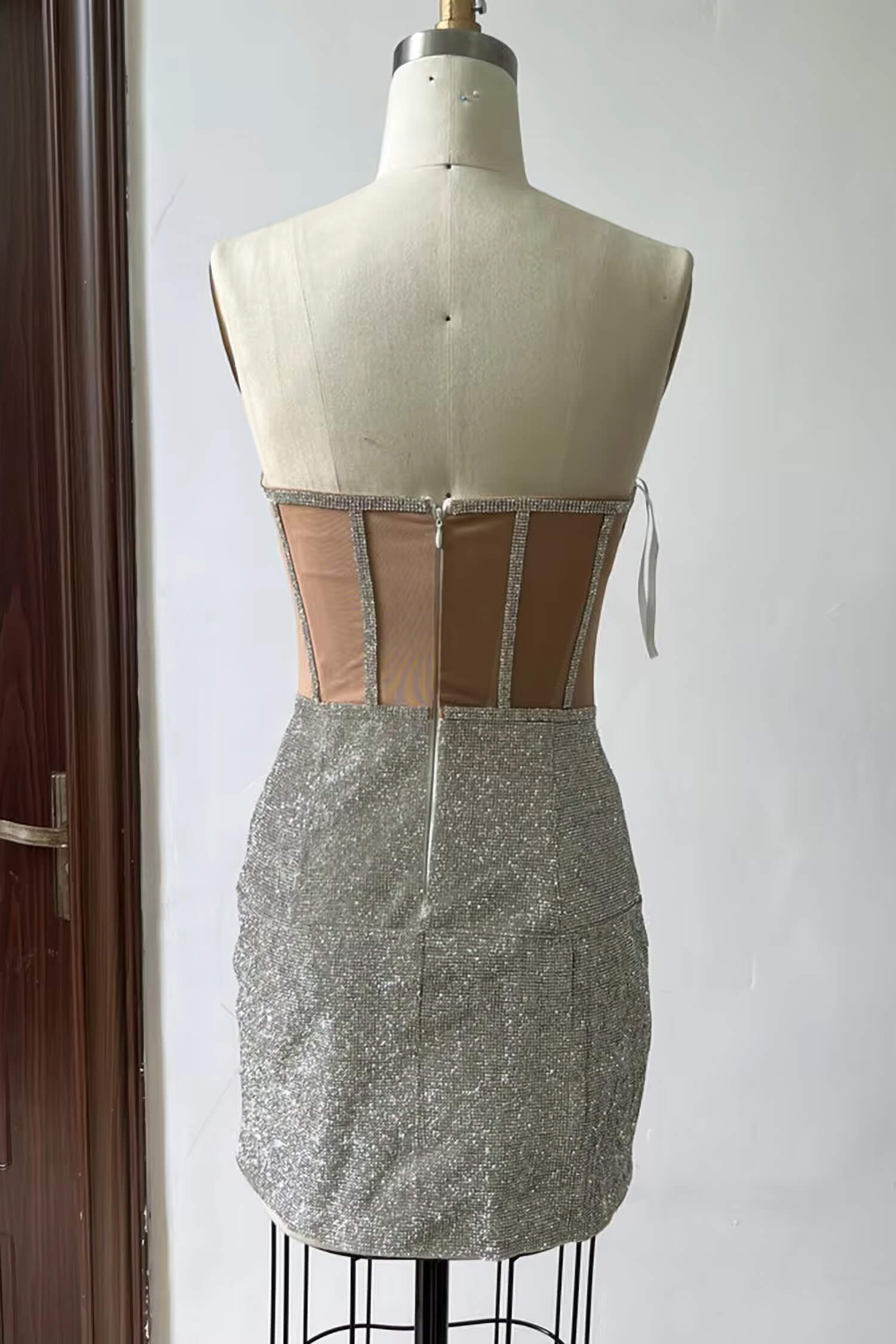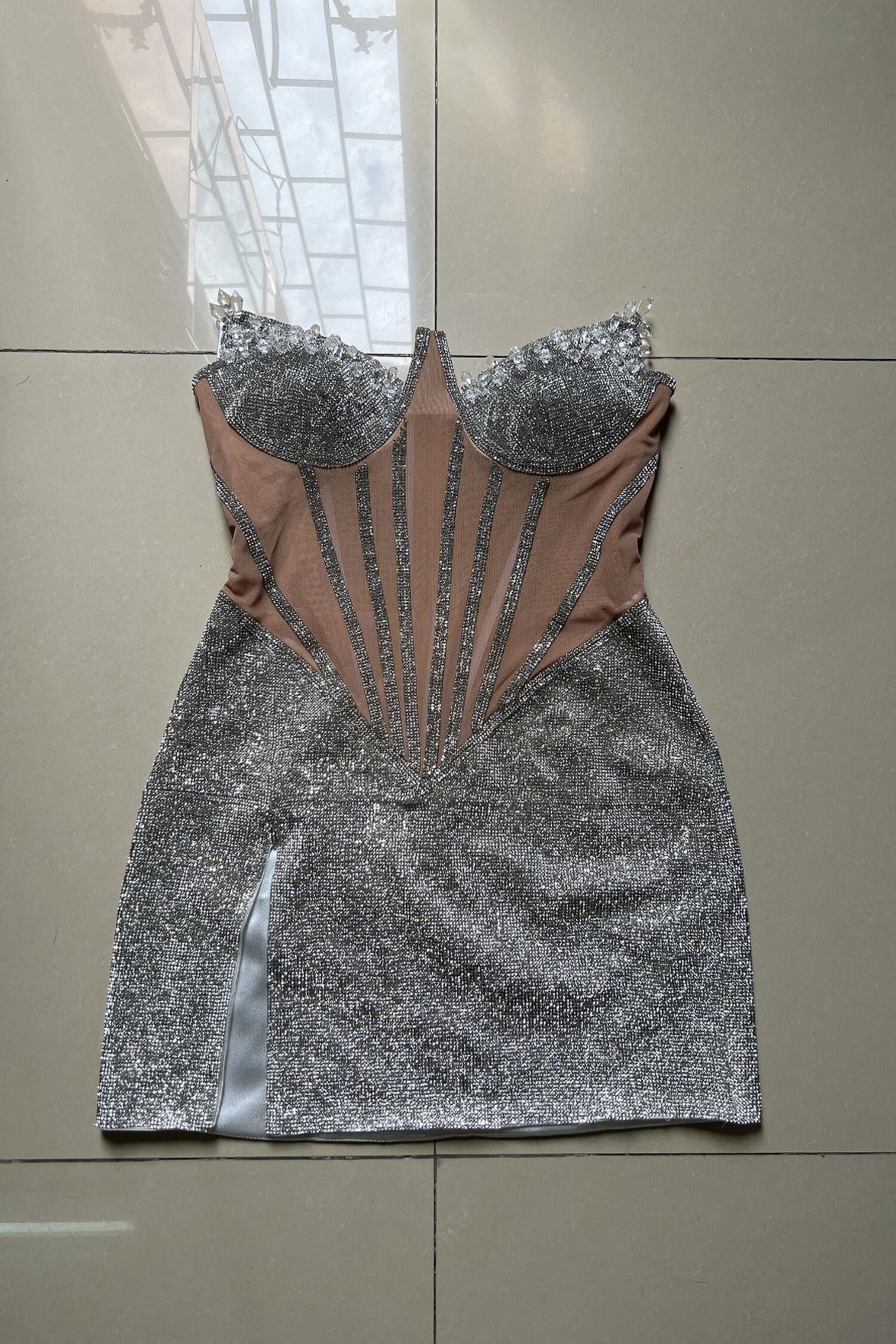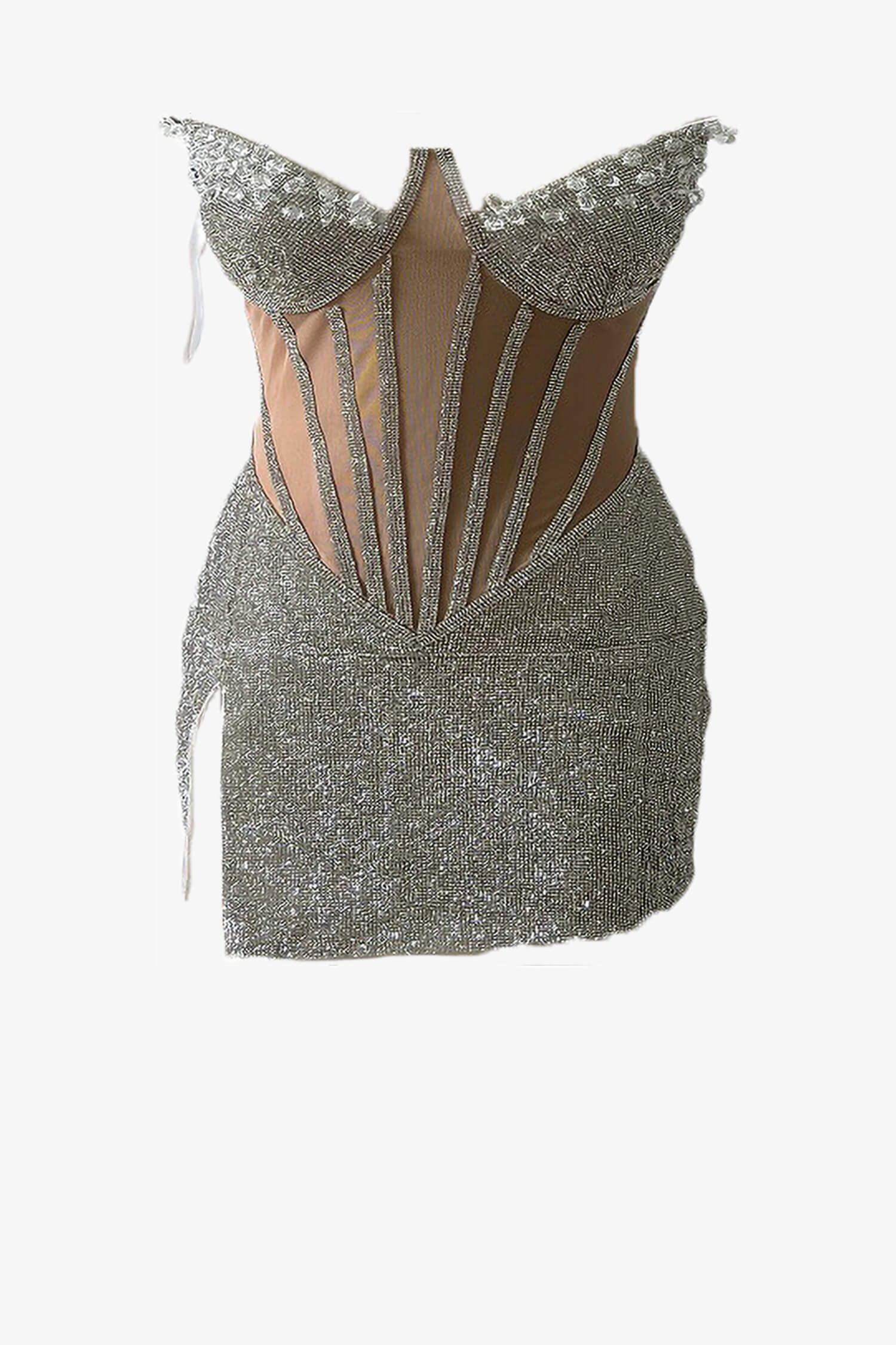 Silver Rhinestone Corset Mini Dress