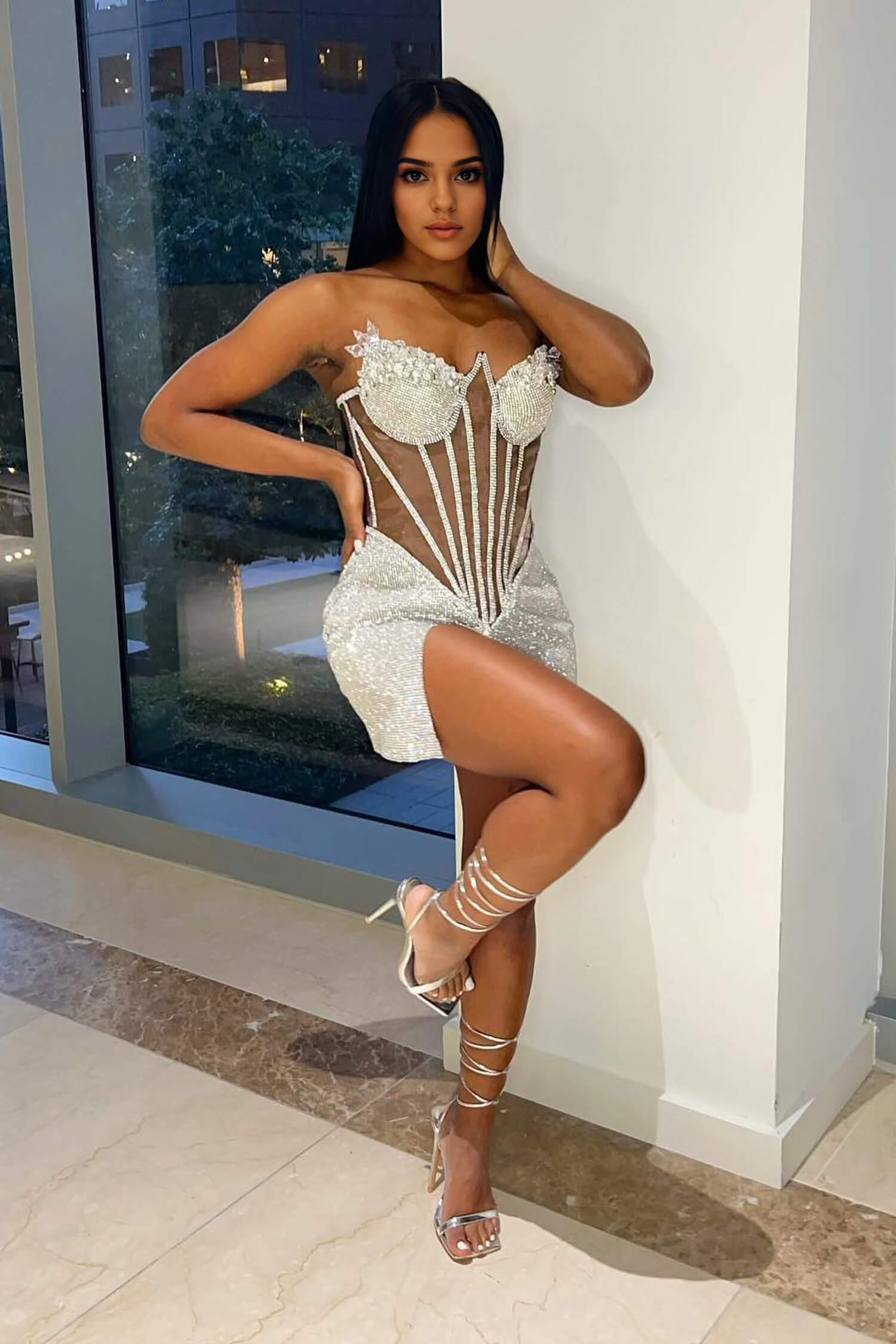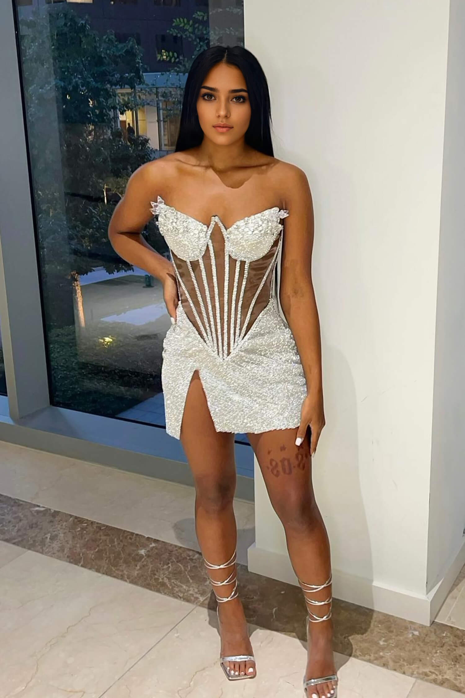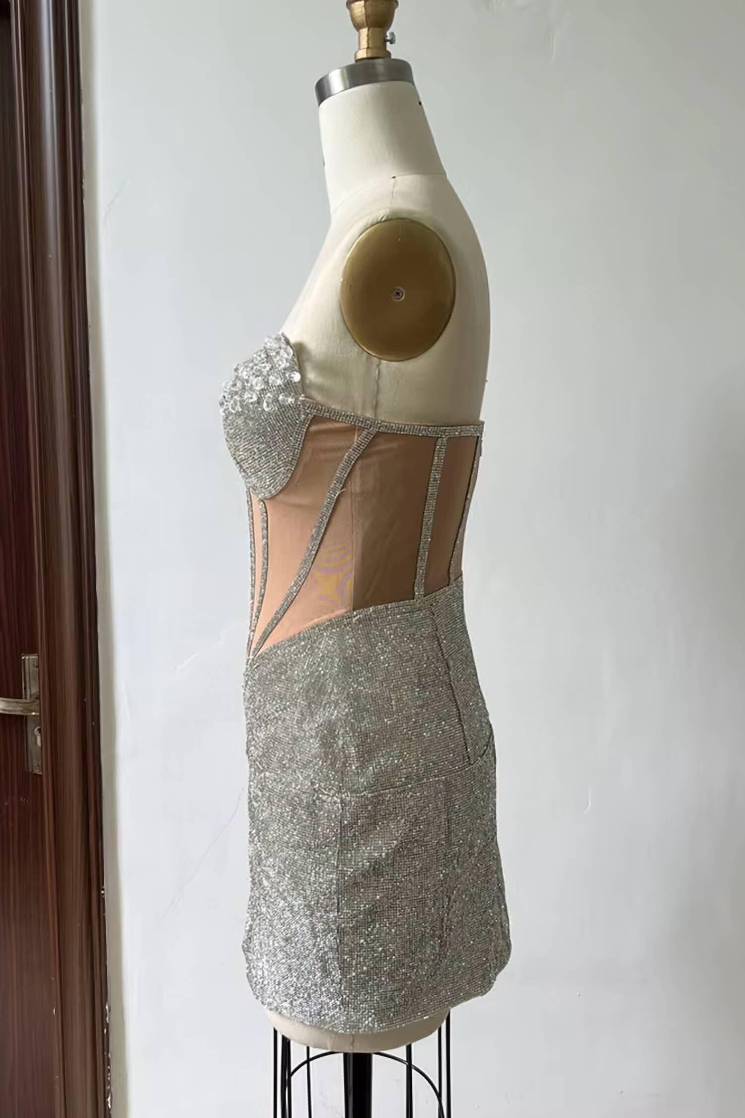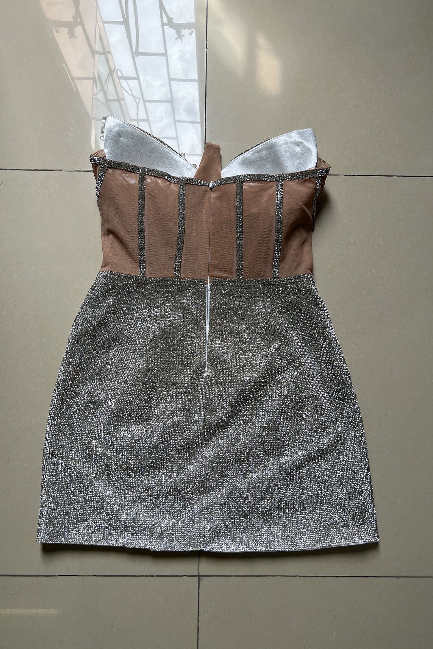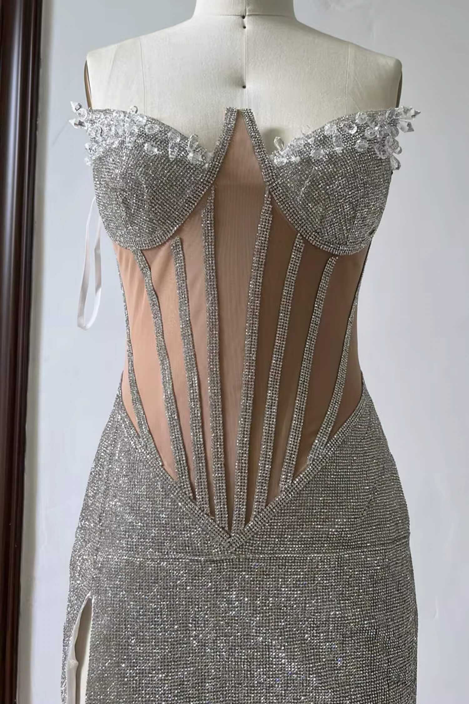 Silver Rhinestone Corset Mini Dress