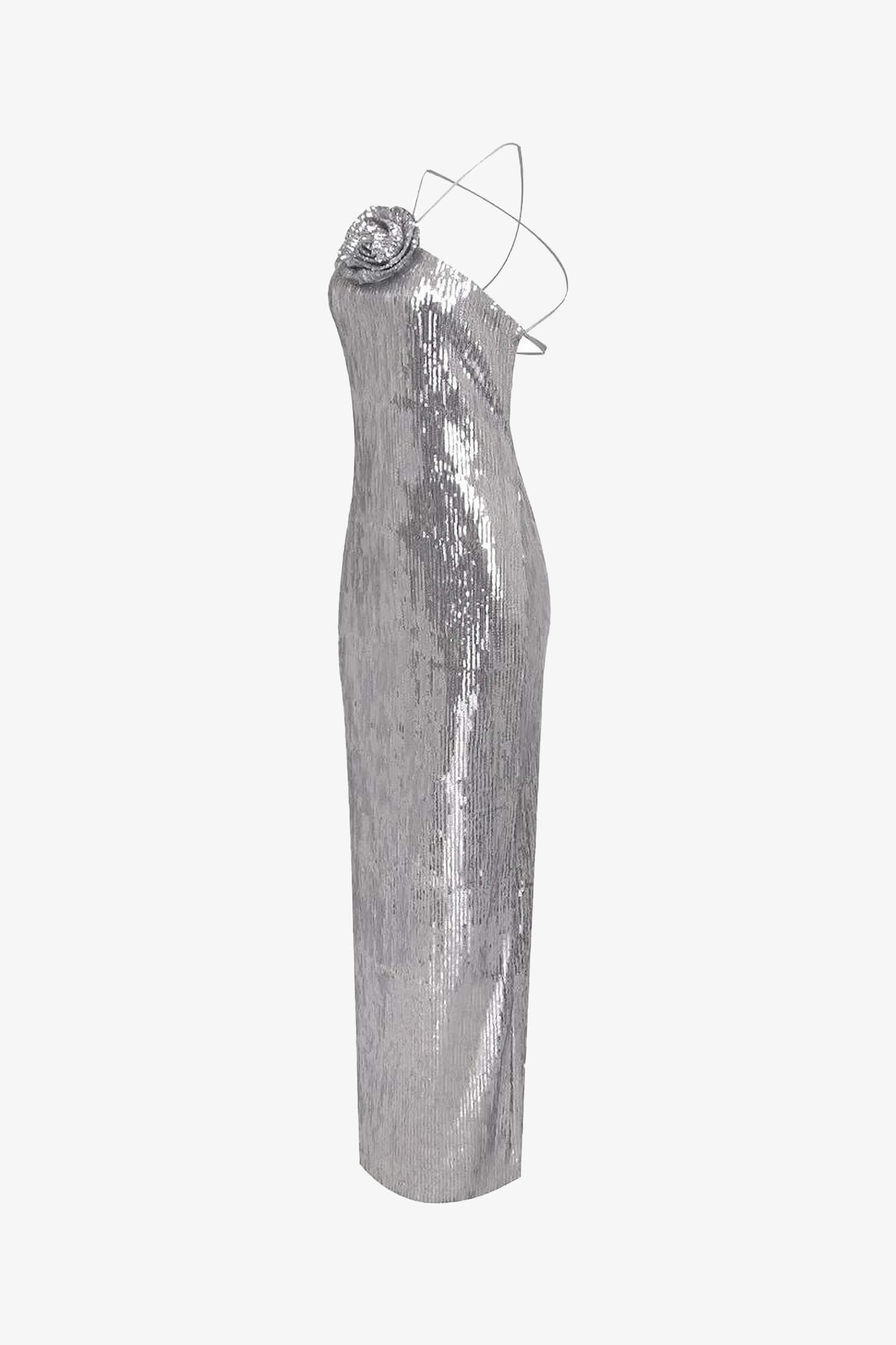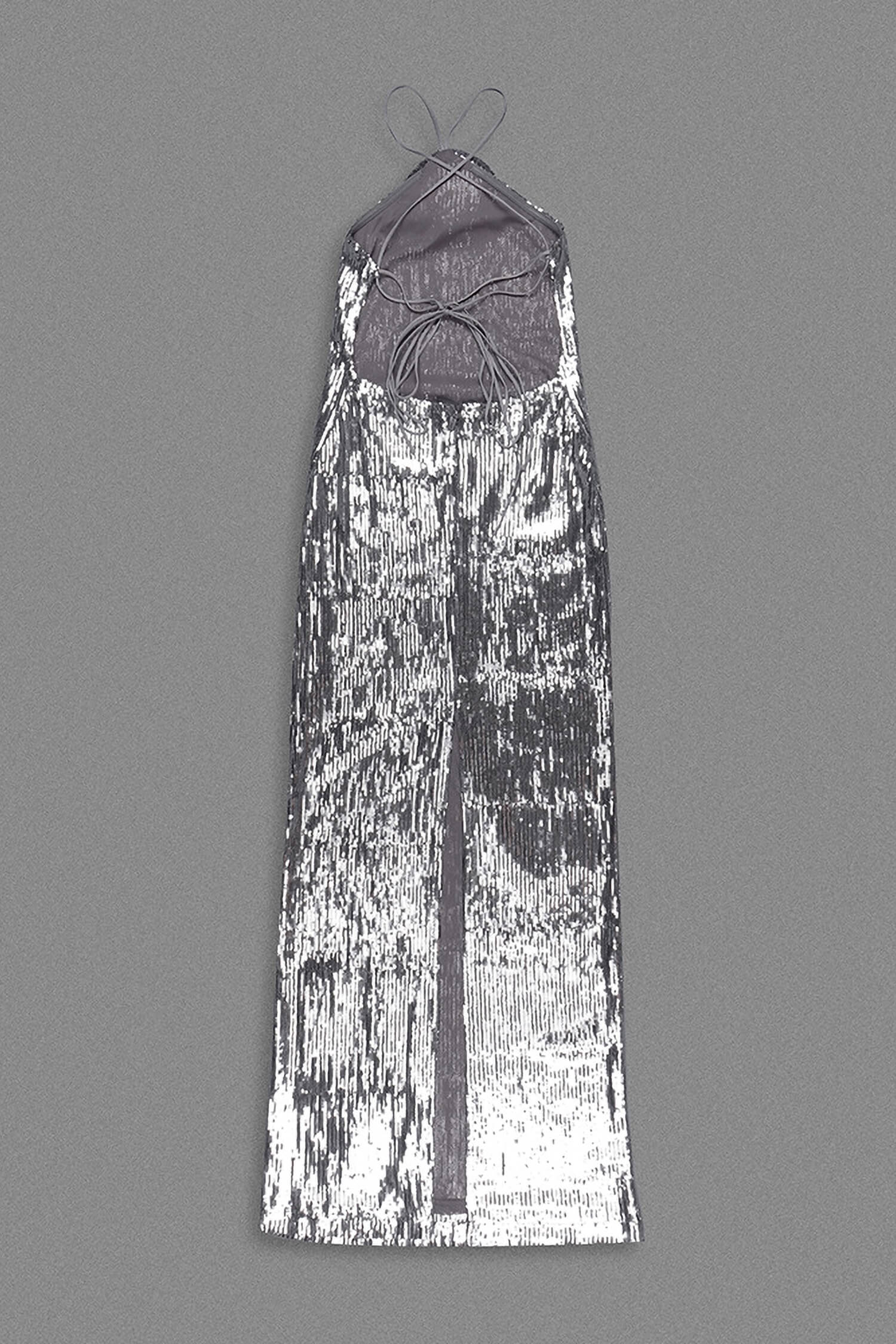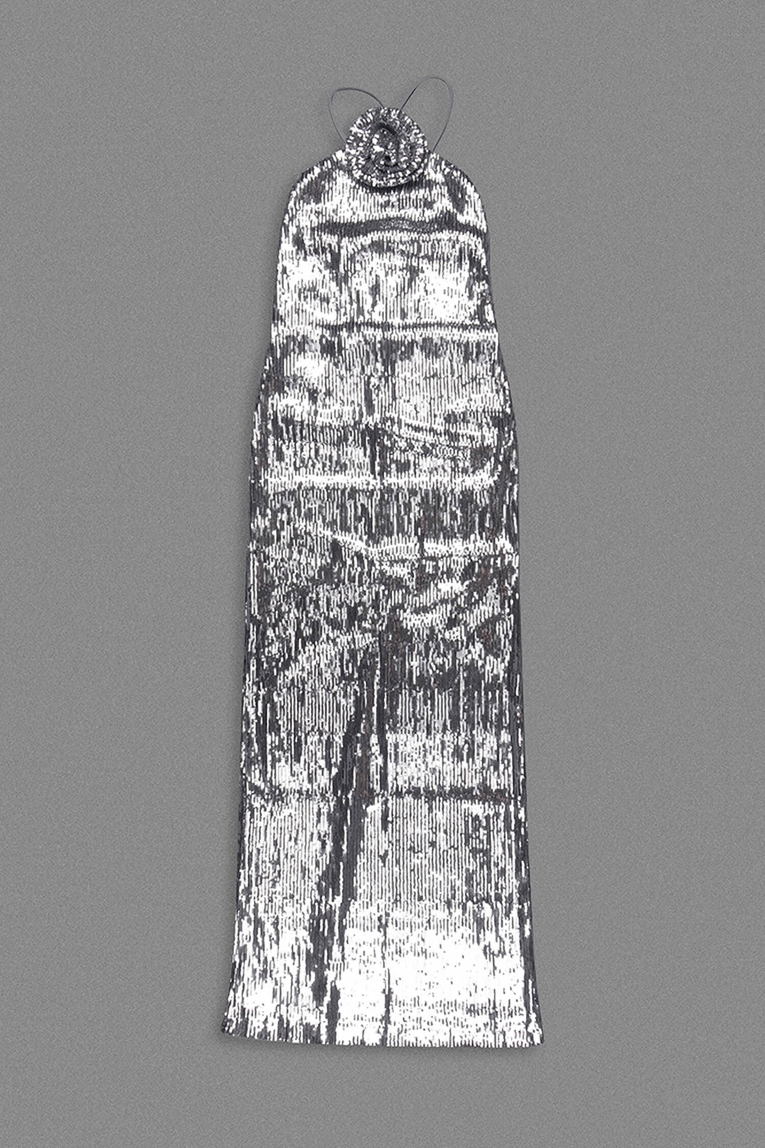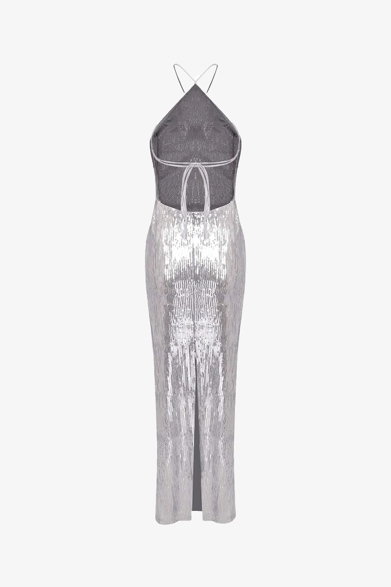 Silver Sequin Halter Maxi Dress